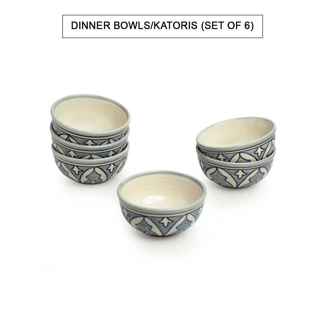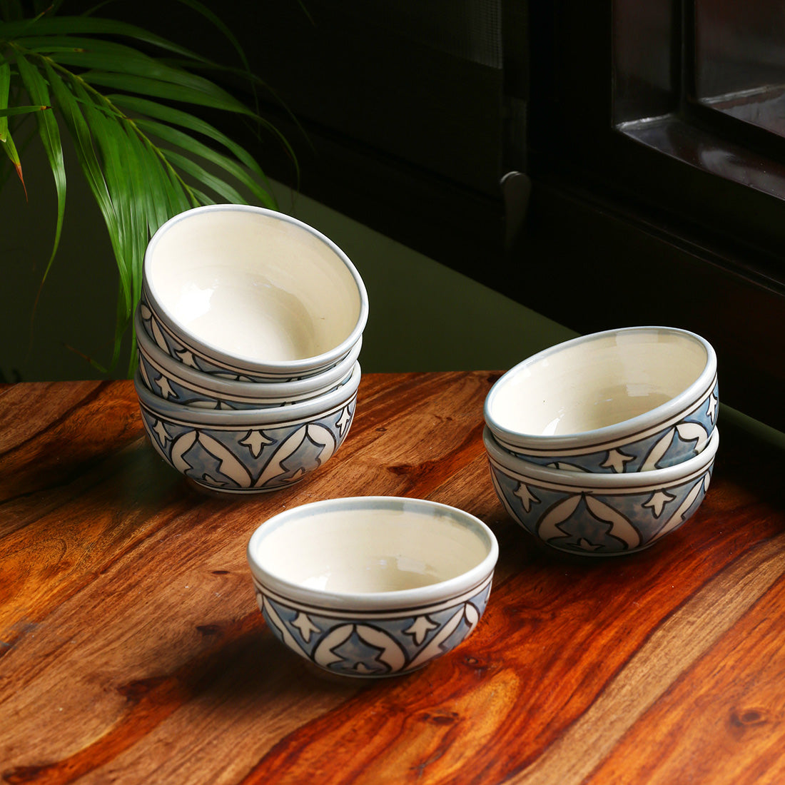 ‘Arabian Nights’ Hand-Painted Ceramic Dinner Bowls/Katoris (Set of 6 | 180 ML | Microwave Safe)