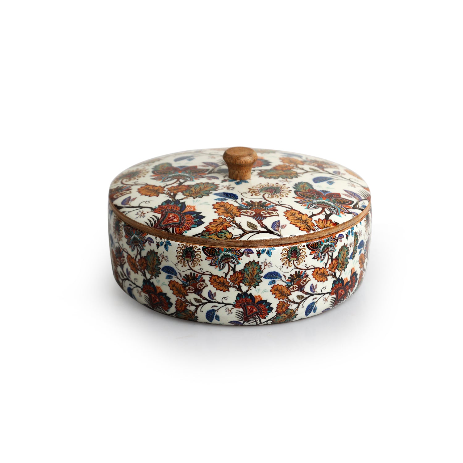 Floral Chronicles – Hand-Enamelled Chapati Box with Lid (1140 ml | Mango Wood | Handcrafted)
