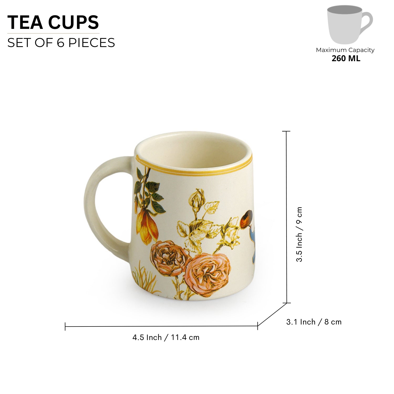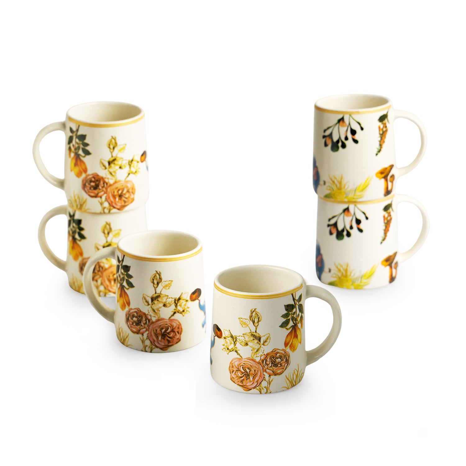 Floral Elegance Ceramic Tea and Coffee Cup Set - Set of 6