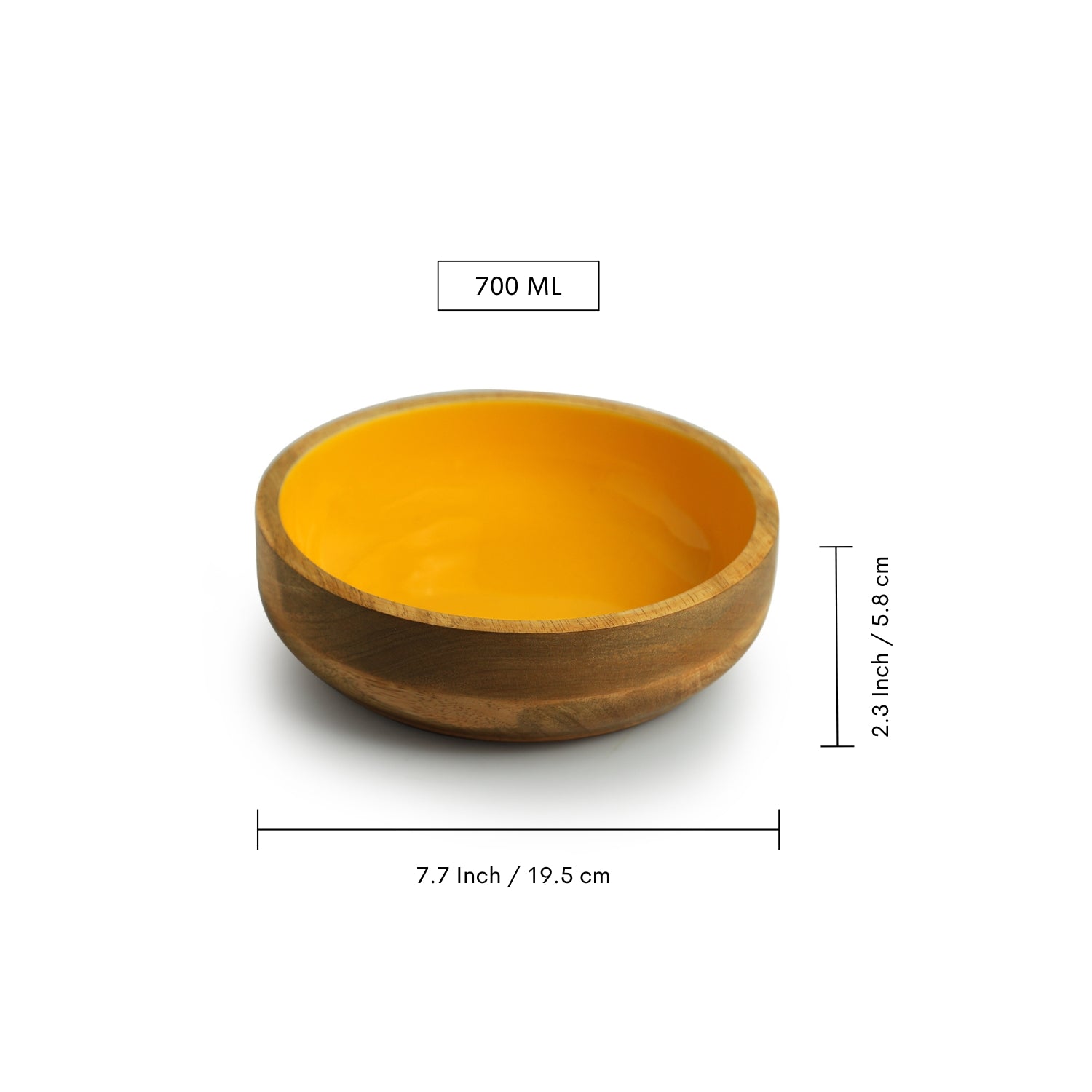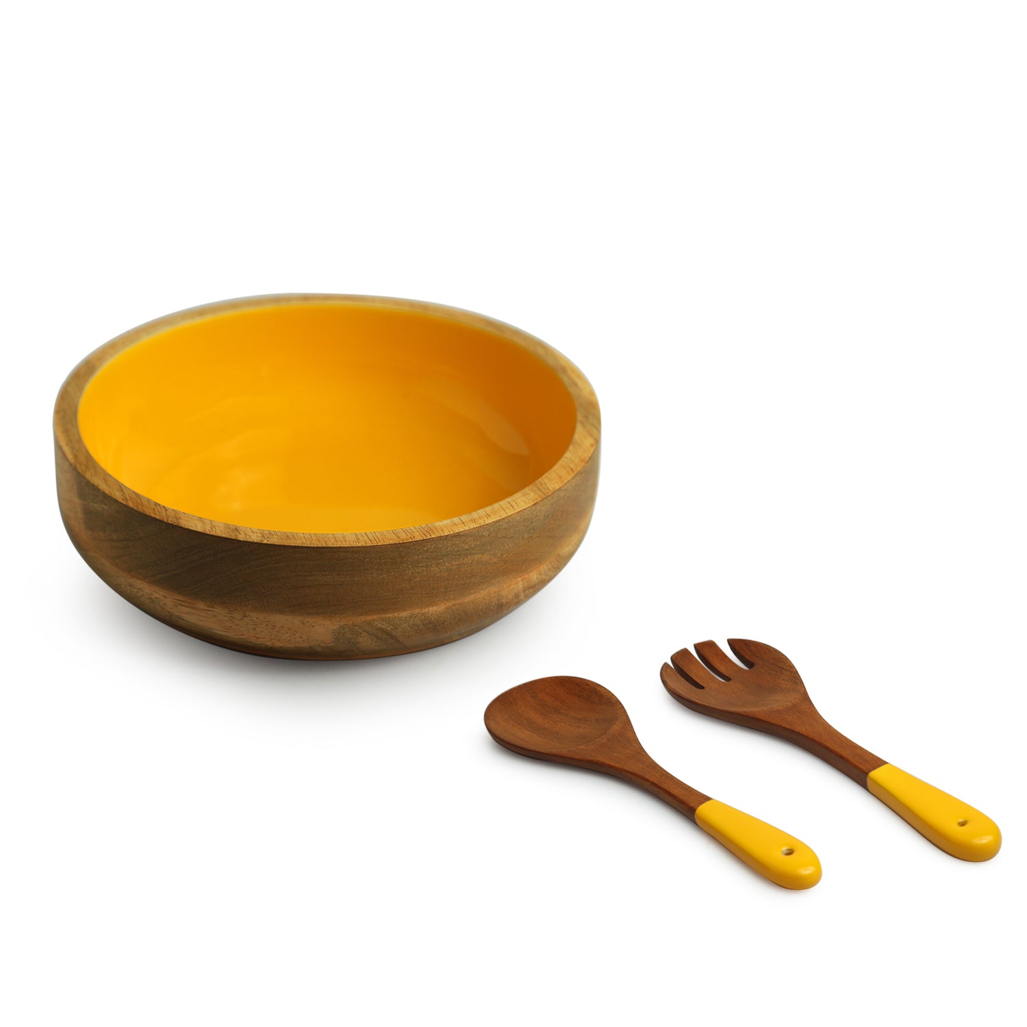 Honey Hive – Hand-Enamelled Wooden Salad Bowl with Servers (700 ML, Set of 3)