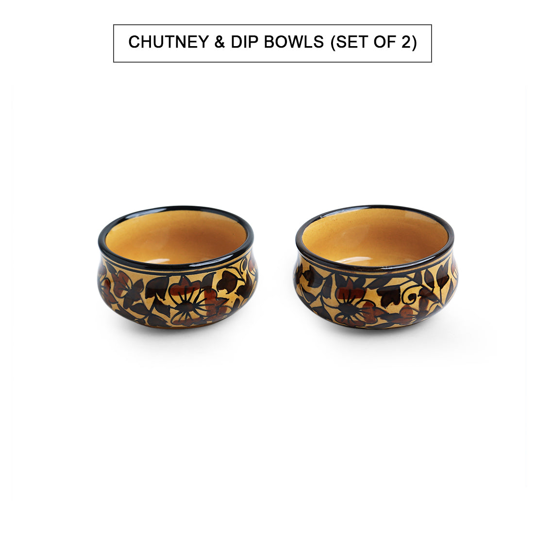 Perfectly sized for chutneys, dips, pickles, or condiments, this set of two bowls is ideal for elevating snack platters or traditional spreads. The rich brown tones, drawn from the earth and sun, bring warmth to your table — turning even everyday dining into a celebration of heritage and craft.