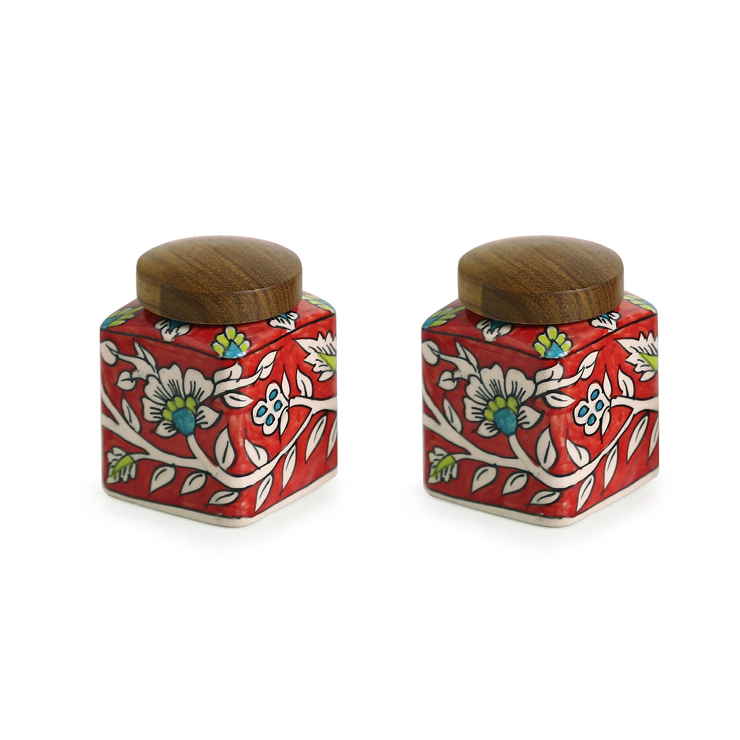 ✔ Durable ceramic jars with sheesham wood lids