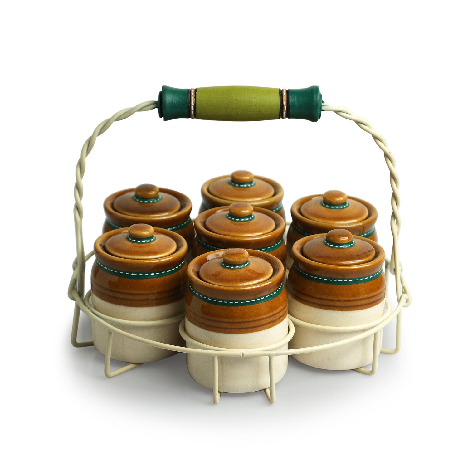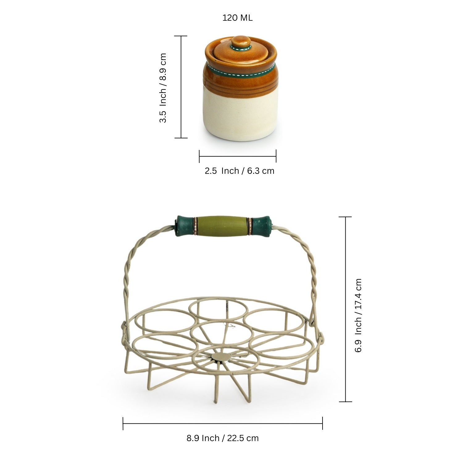 Old Martaban Multi-Purpose Ceramic Pickle and Jam Jar Set and Holder