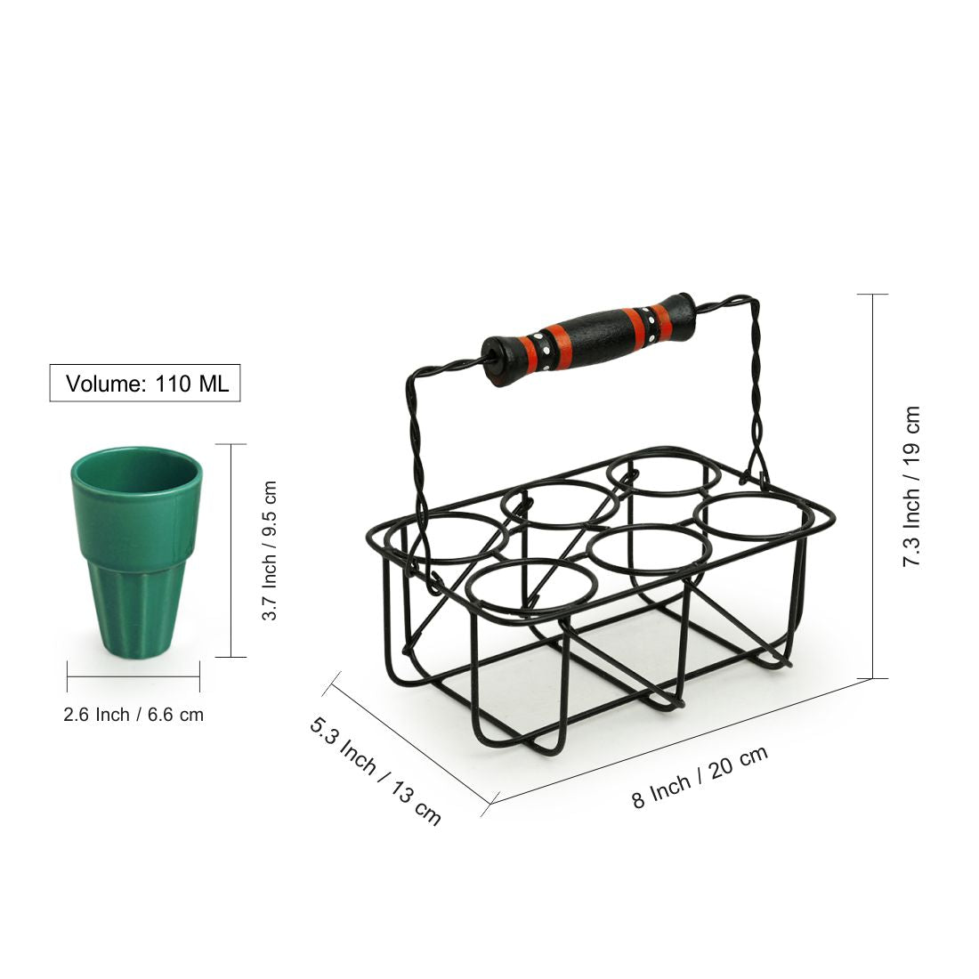 *Brighten your tea rituals with this handcrafted 6-piece ceramic tea glass set, complete with a stylish iron-and-wood holder – where traditional "cutting chai" culture meets contemporary design.*