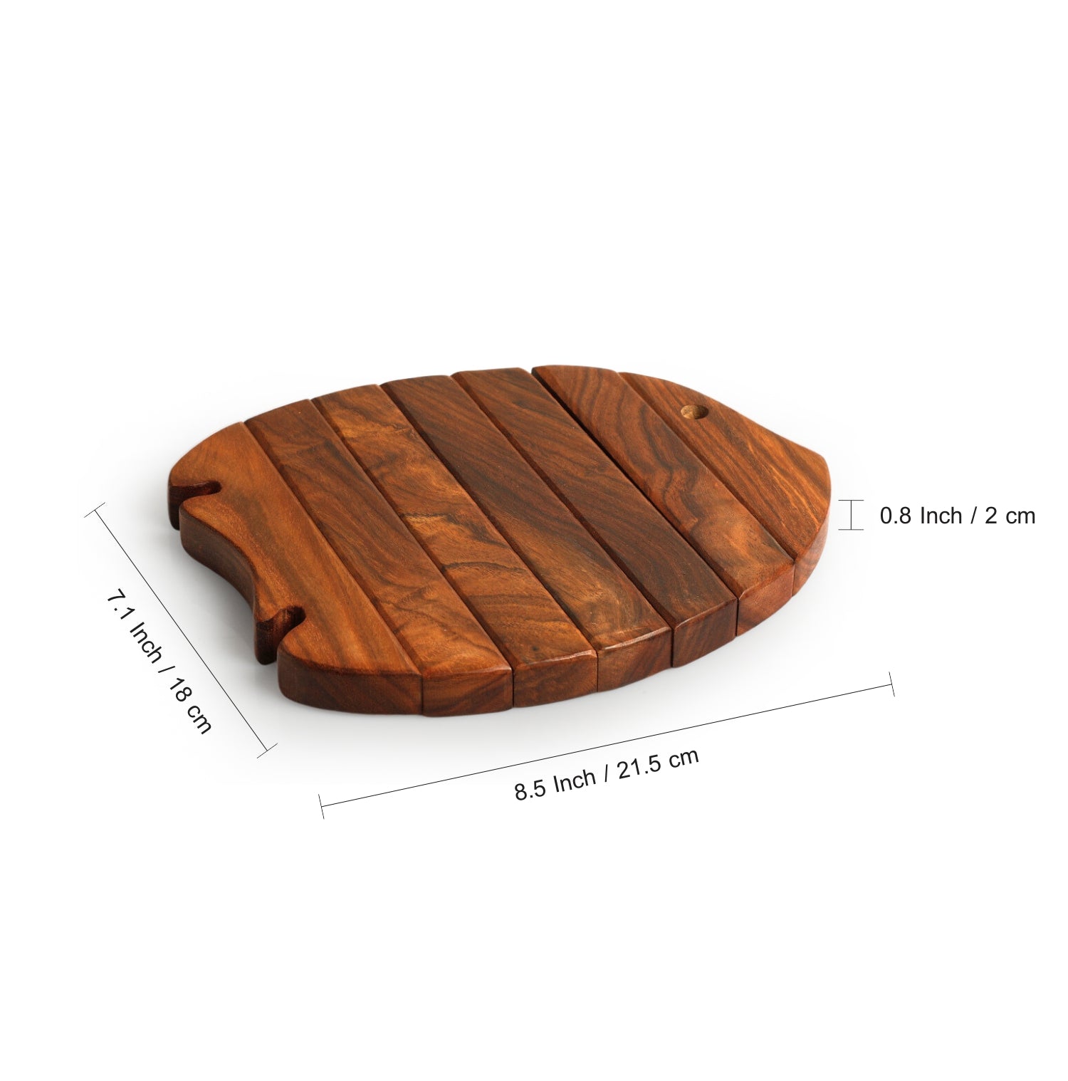 “Tideform” Handcrafted Expandable Fish Trivet in Sheesham Wood