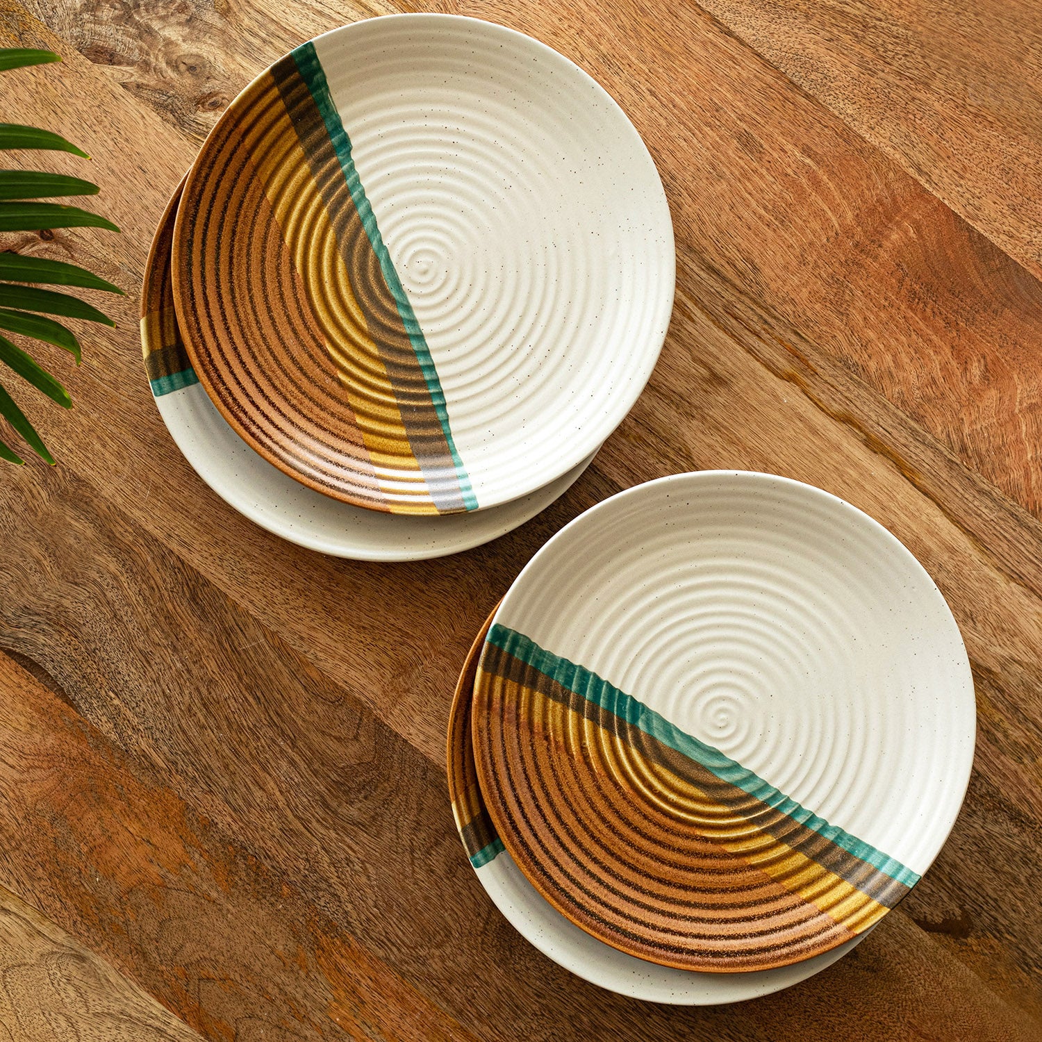 'Zen Garden' Hand Glazed Ceramic Dinner Plates (Set of 2, Microwave Safe)